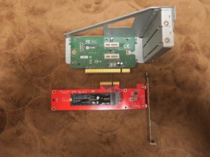 で、M.2 SSDを接続するため、PCI-Expressカードを用意します。Owltech OWL-PCEXM2-02と言って、PCI Express x4接続のカードですね。