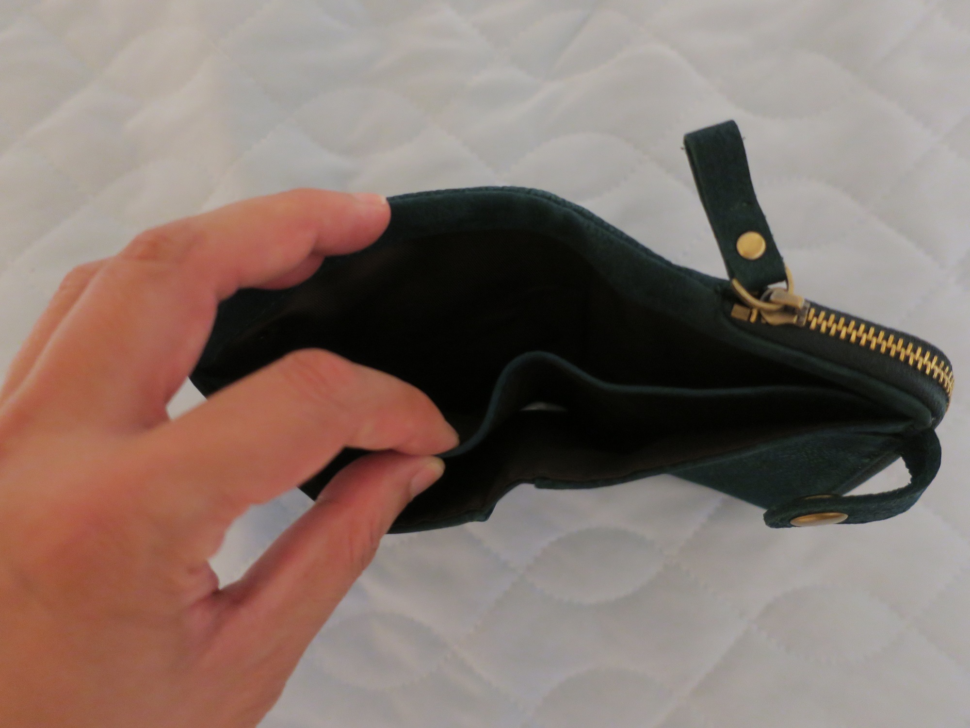 ファスナーを開けると、小銭入れです。この小銭入れ、かなり広いです。しかも、口はがばっと開くので、中が見やすいです。海外旅行に行くと、どういうわけか小銭が増えやすいのですが、これなら大丈夫です。